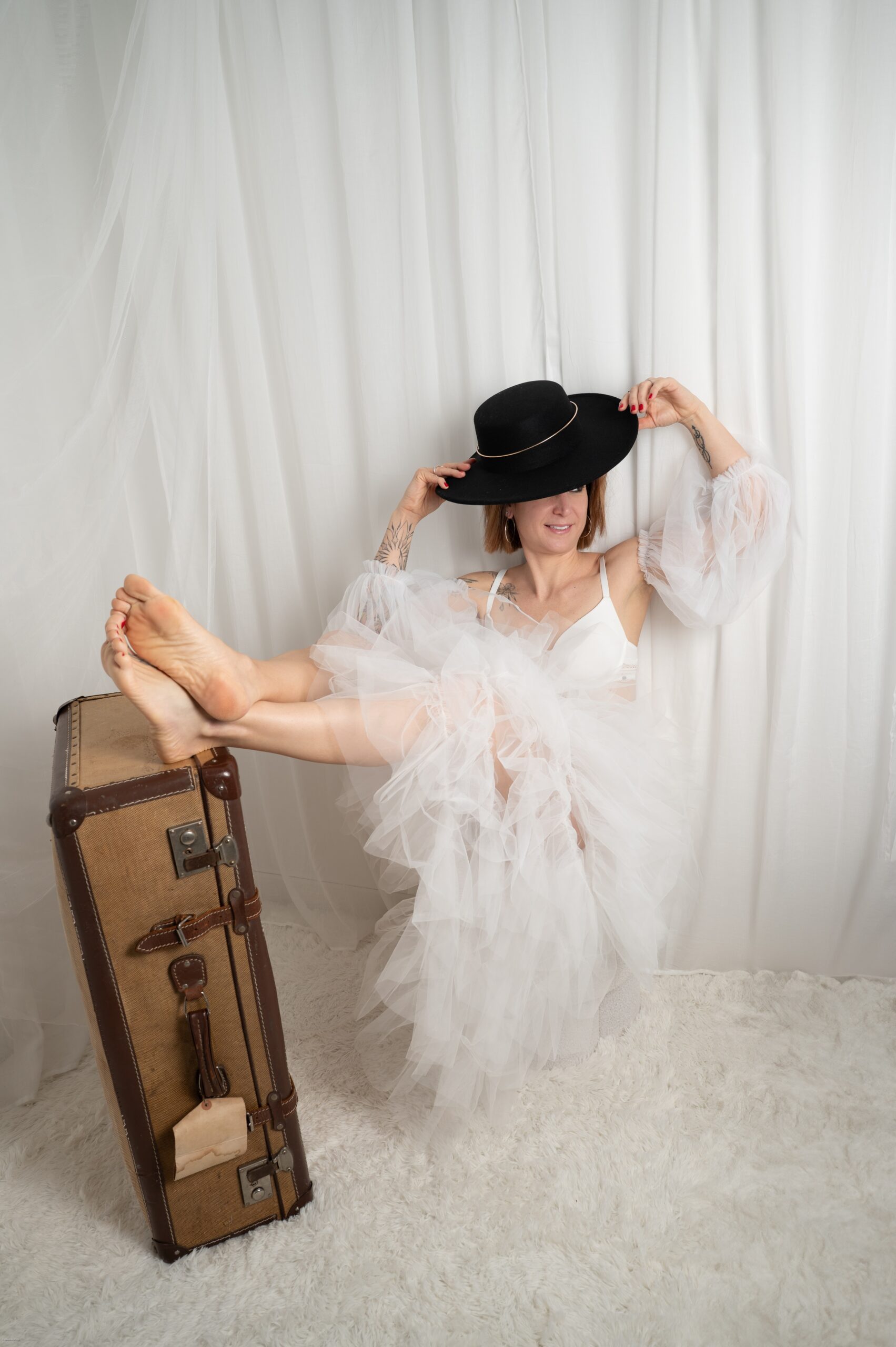 La mise en beauté par une professionnelle ( maquillage et coiffure) se fait au studio et tout au long du shooting, la maquilleuse saura adapter le look en fonction des tenues, des ambiances. Nous crérons plusieurs univers pour obtenir une collection d’images élégantes, sensuelles ou artistiques, toujours à votre rythme, sans stress.